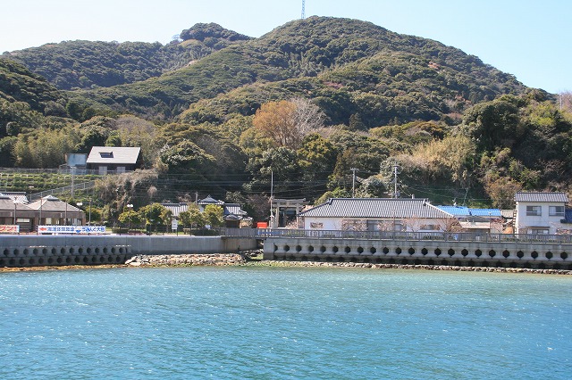 大島に近づくと、左手に宗像大社中津宮の鳥居が見えました。