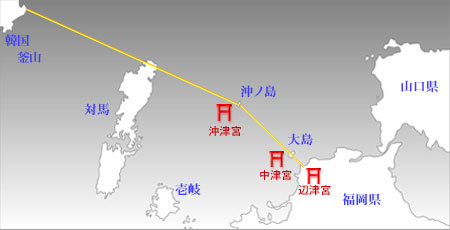 『日本書紀』には、宗像三女神は、大陸に最も近く、大陸との海上交通の重要な道にあたるこの地に降臨され、お祀りされるようになったと記されています。
