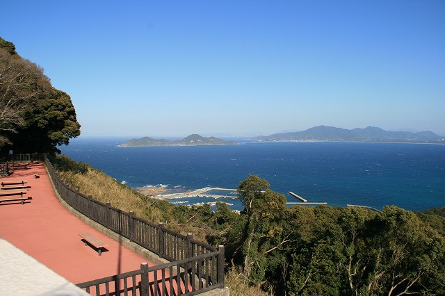 山頂の展望台は、絶景が広がっていました。沖ノ島もよく見え、対岸の北九州の山々も一望できます。