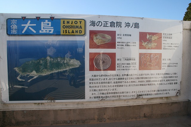 ここに、「海の正倉院」と呼ばれる沖ノ島のことを伝える看板が設置してありました。