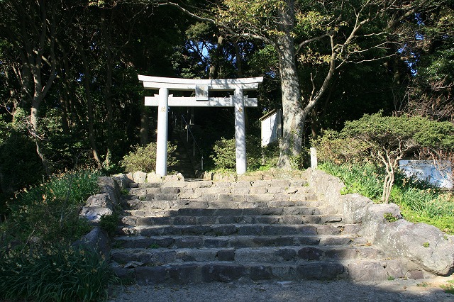 沖ノ島を遙拝させていただいた後、この大島最高峰の御嶽山(224メートル)へと向かいました。この山頂に祀られる御嶽宮には、湍津姫神(たぎつひめのかみ)の荒魂(あらみたま)と天照大神がお祀りされています。