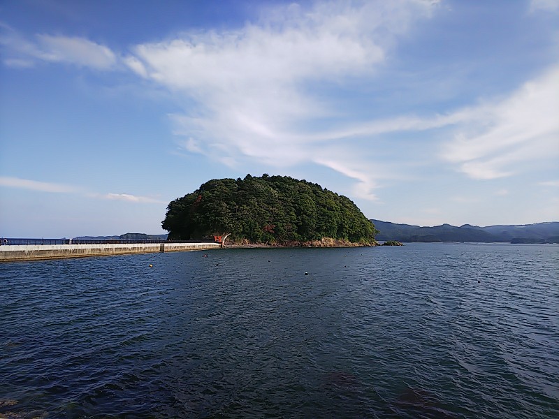 歌津の伊里前湾を見守るように高台に鎮座しています。古くから恵比寿様がお祀りされ、大漁と航海の安全が祈られてきました。