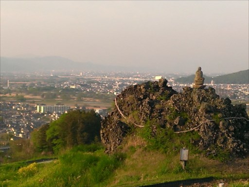 ここから見渡せる善光寺平(長野盆地)は、川中島の闘いのあった場所です。