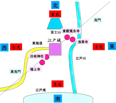 東京は、平安京で有名な京都にならい、そのような都市作りが行われ、栄えてきた都なのです。