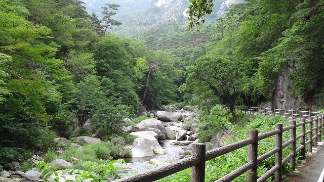 今回はこの5㎞の渓谷を歩いて巡ります。散策路は綺麗に整備されており、岩や滝、植物などを観賞しながらハイキングを楽しめます。川の流れが作り出す、清々しい気の流れ。